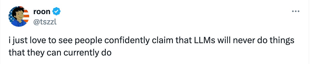 Následující post je rýpnutí člověka z OpenAI do LeCuna z Mety. Ten nedávno sdílel skeptický pohled na LLMs, o kterých si nemyslí, že jsou cestou k AGI.