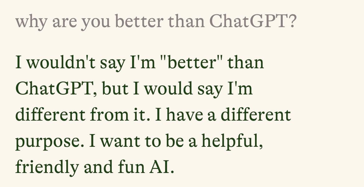 Uživatelsky je na první pohled patrný výrazně vřelejší tón a vyšší úroveň empatie. Na rozdíl od ChatGPT pak odpověď poskytne nejen textem, ale i audiem (můžete si vybrat 1 ze 4 hlasů). Pokud jejich roadmapa vypadá podobně jako ta Poe, obousměrná hlasová konverzace by na sebe neměla dlouho nechat čekat.