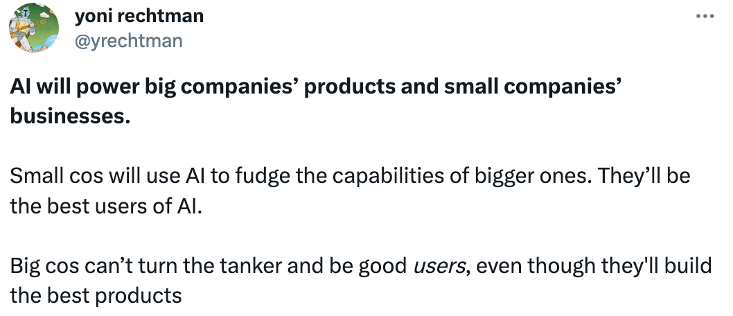Slow Ventures jsou AI skeptici. To zajímavé z příspěvku se týká malých a středních firem – pokud jsou ideálními uživateli/zákazníky, co pro ně dává smysl postavit?
