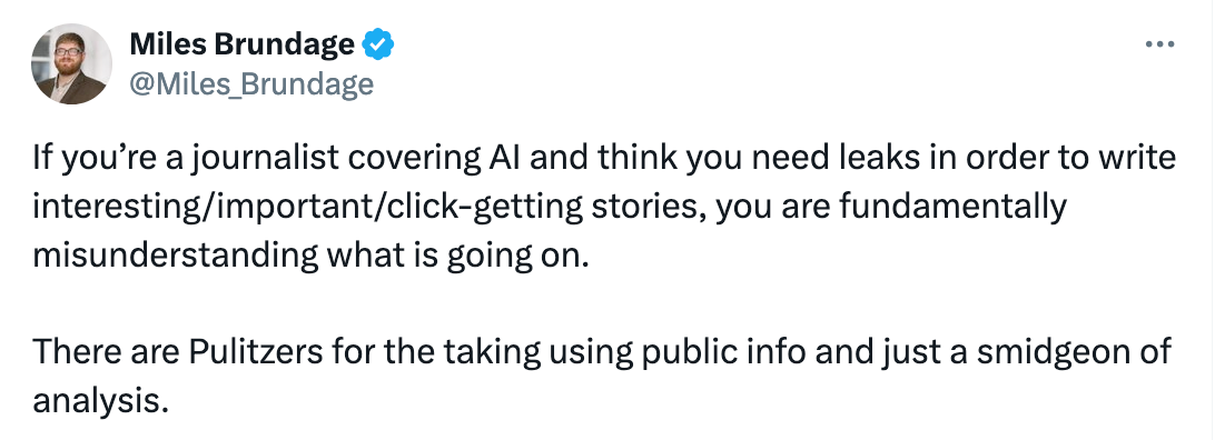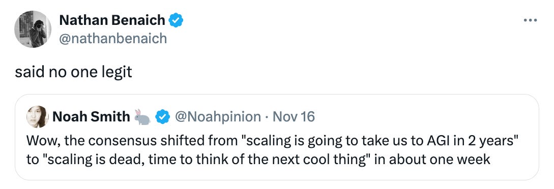 Ilya Sutskever zmínil pro Reuters, že škálování modelů v rámci před-tréninku narazilo na své limity. Yann LeCun z Mety to vítal se slovy “já vám to říkal”. Sam Altman se vyjádřil jen stručným nesouhlasem (twít níže).